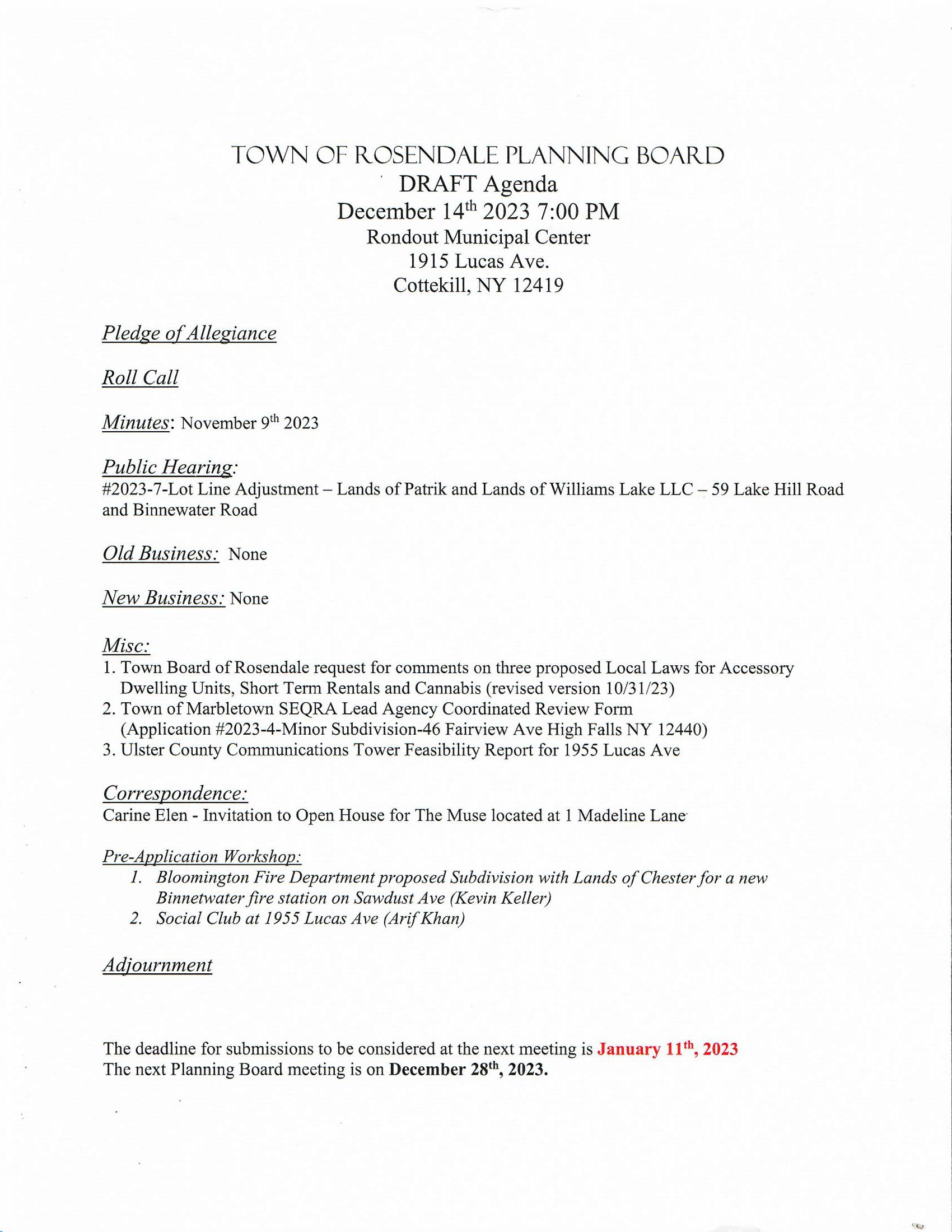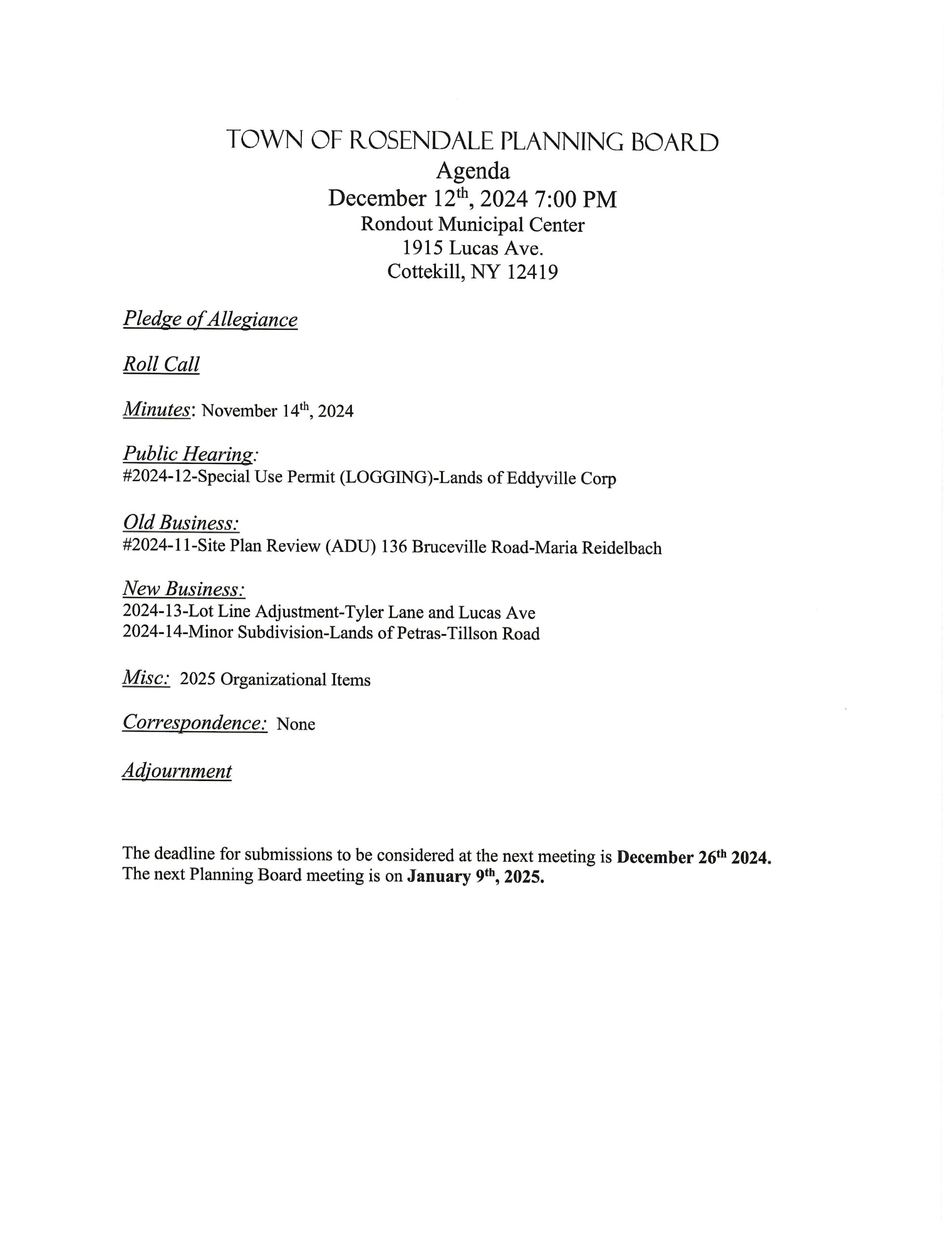 The Town Offices will be closing today at 2:30 PM due to the inclement weather. The Town Board Meeting is cancelled tonight 12/10/2025. Thank you.