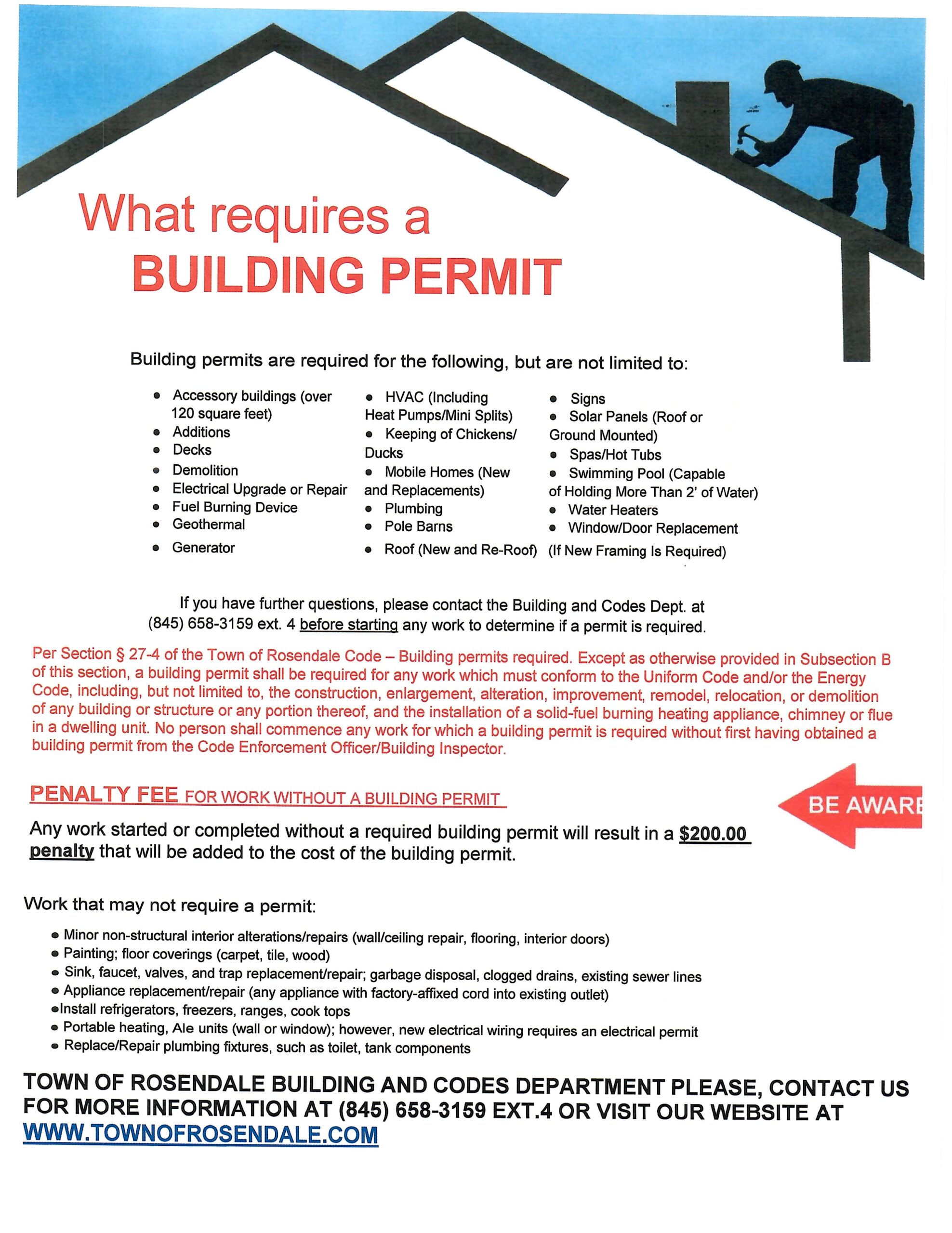 Building permits are required for new construction, additions, alterations, decks, pools, garages, fireplaces, wood stoves etc.