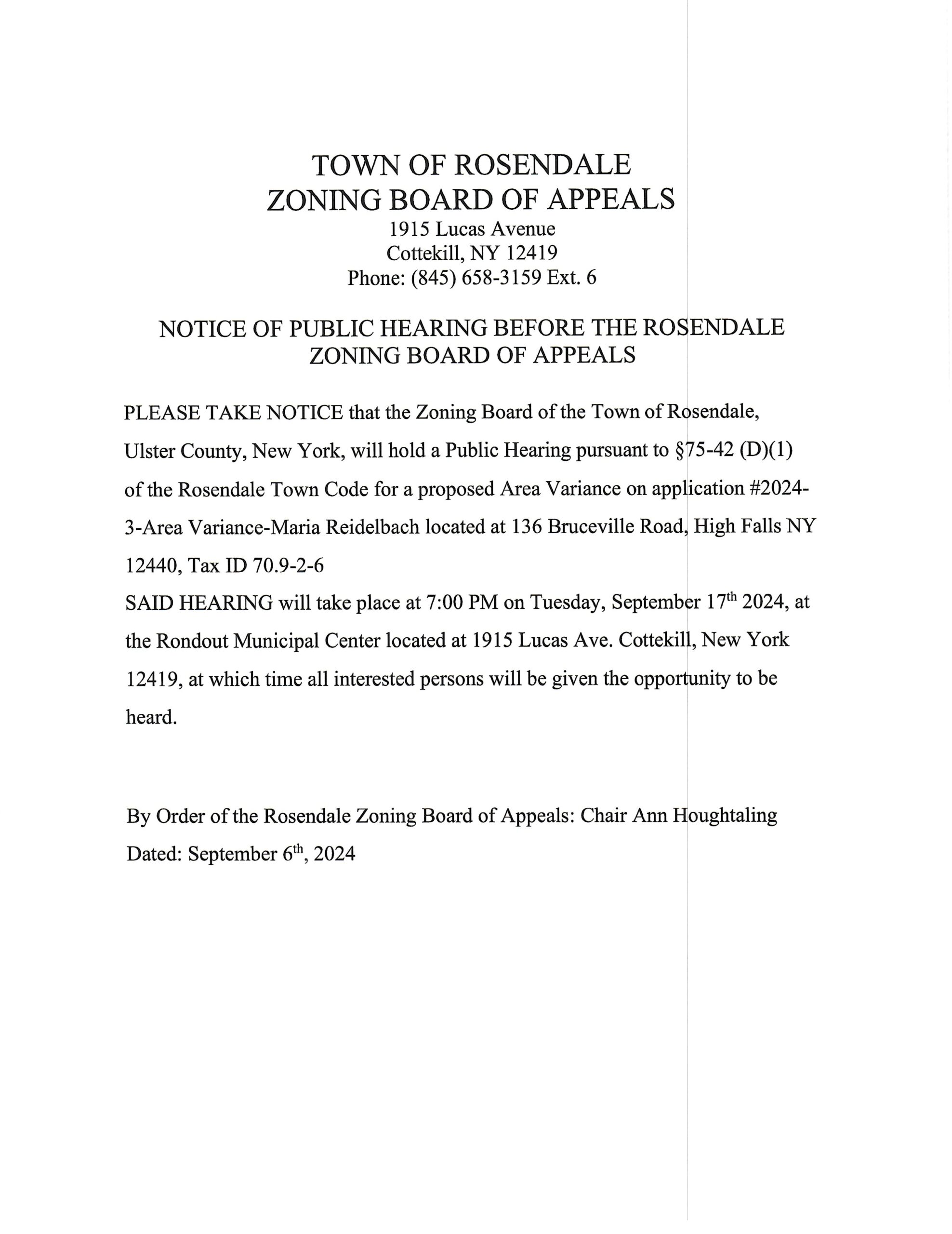 Planning Board Public Hearing September 17, 2024