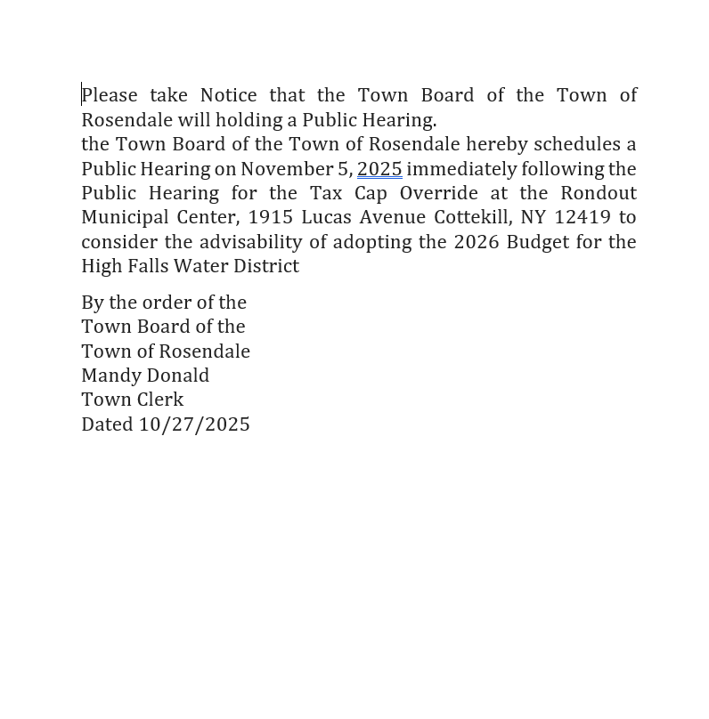 HOME > Public Hearing for the 2026 Budget for the High Falls Water District 11/5/2025 6pm