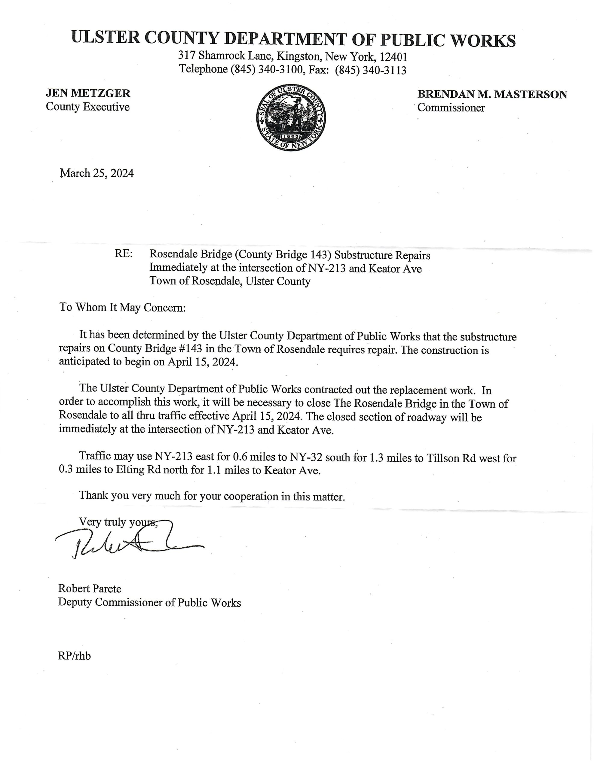 HOME > Rosendale Bridge Work Road Closure