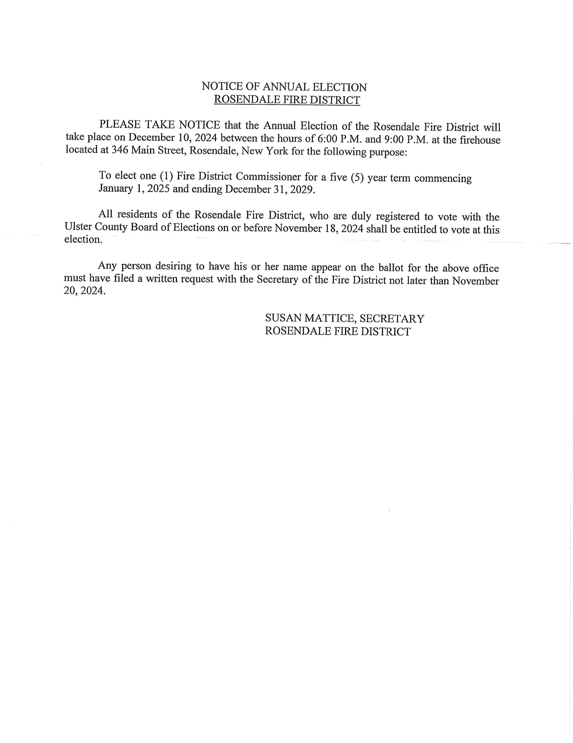 HOME > Rosendale Fire District Annual Election Tuesday, December 10, 2024