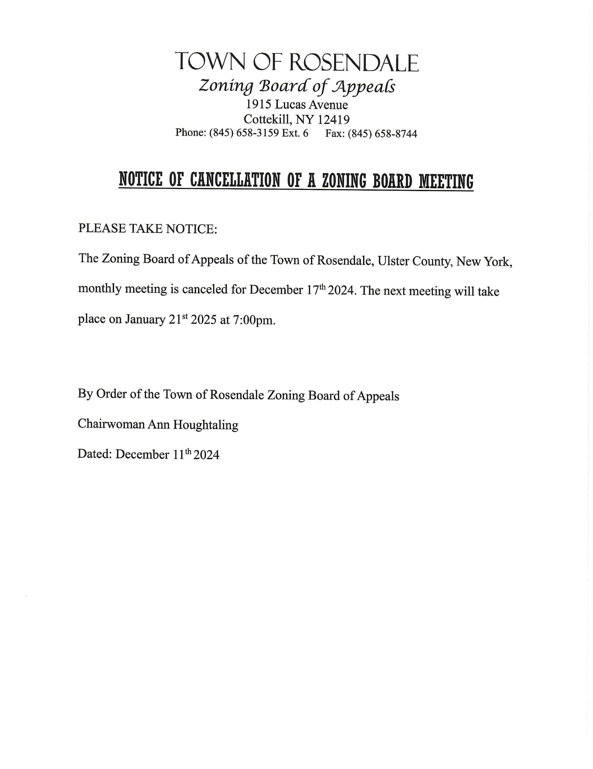 HOME > Zoning Board of Appeals Meeting for December 17, 2024, Cancelled